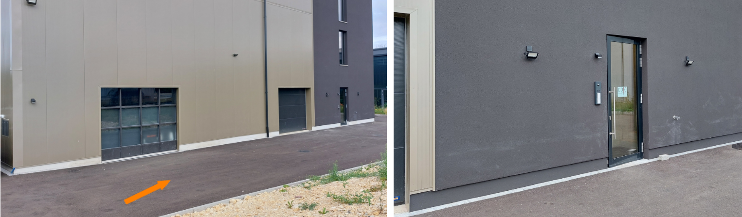 Von der Grienackerstrasse, nach dem Zaun und vor den, hellblauen Containern, links reingehen