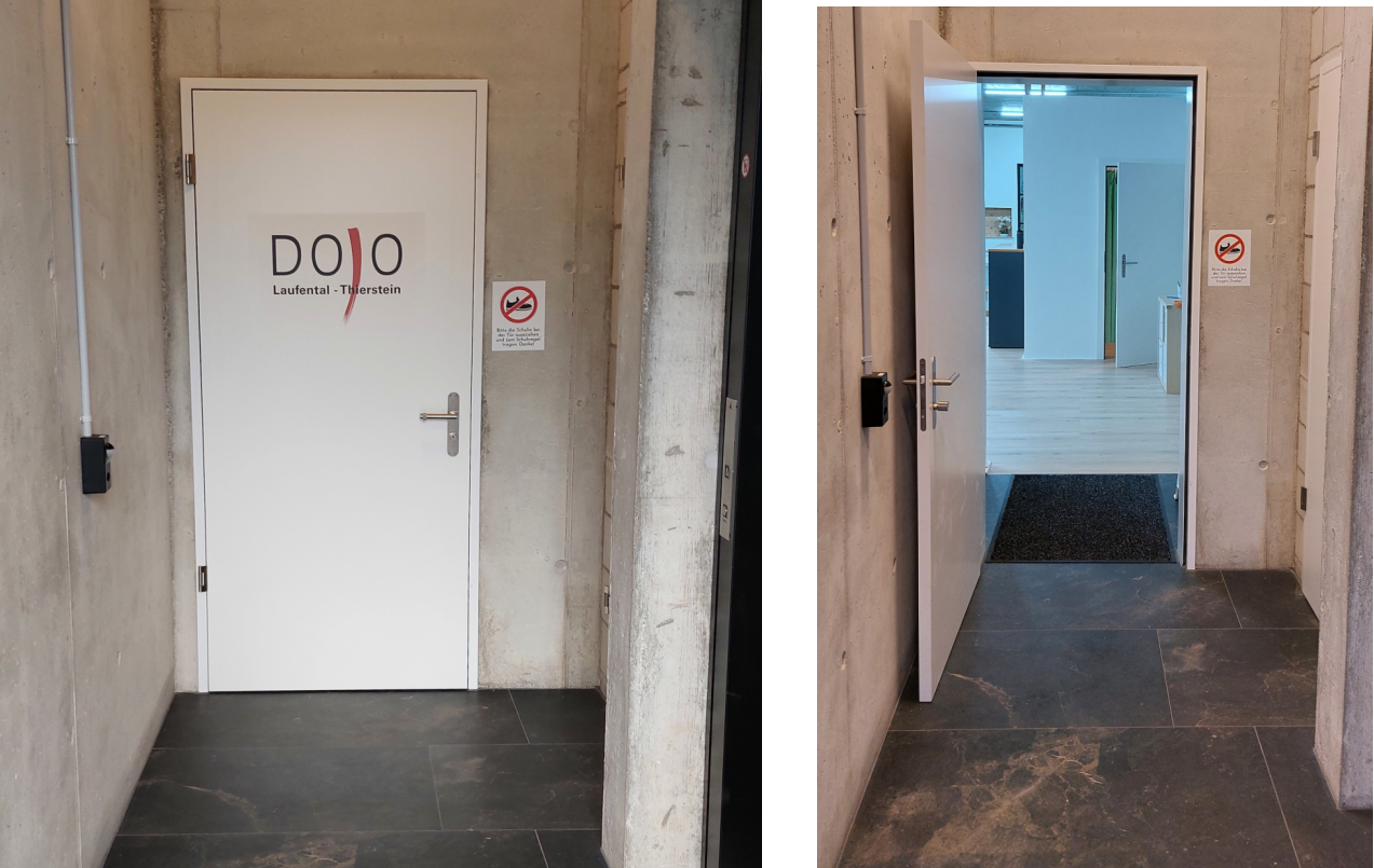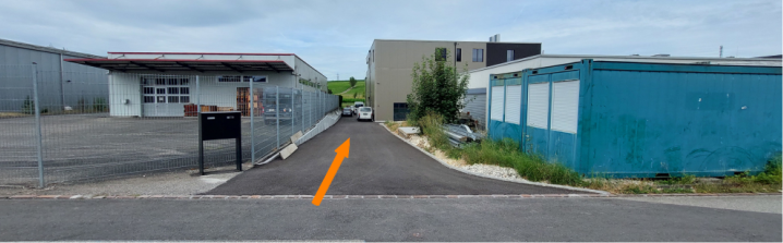 Von der Grienackerstrasse, nach dem Zaun und vor den, hellblauen Containern, links reingehen